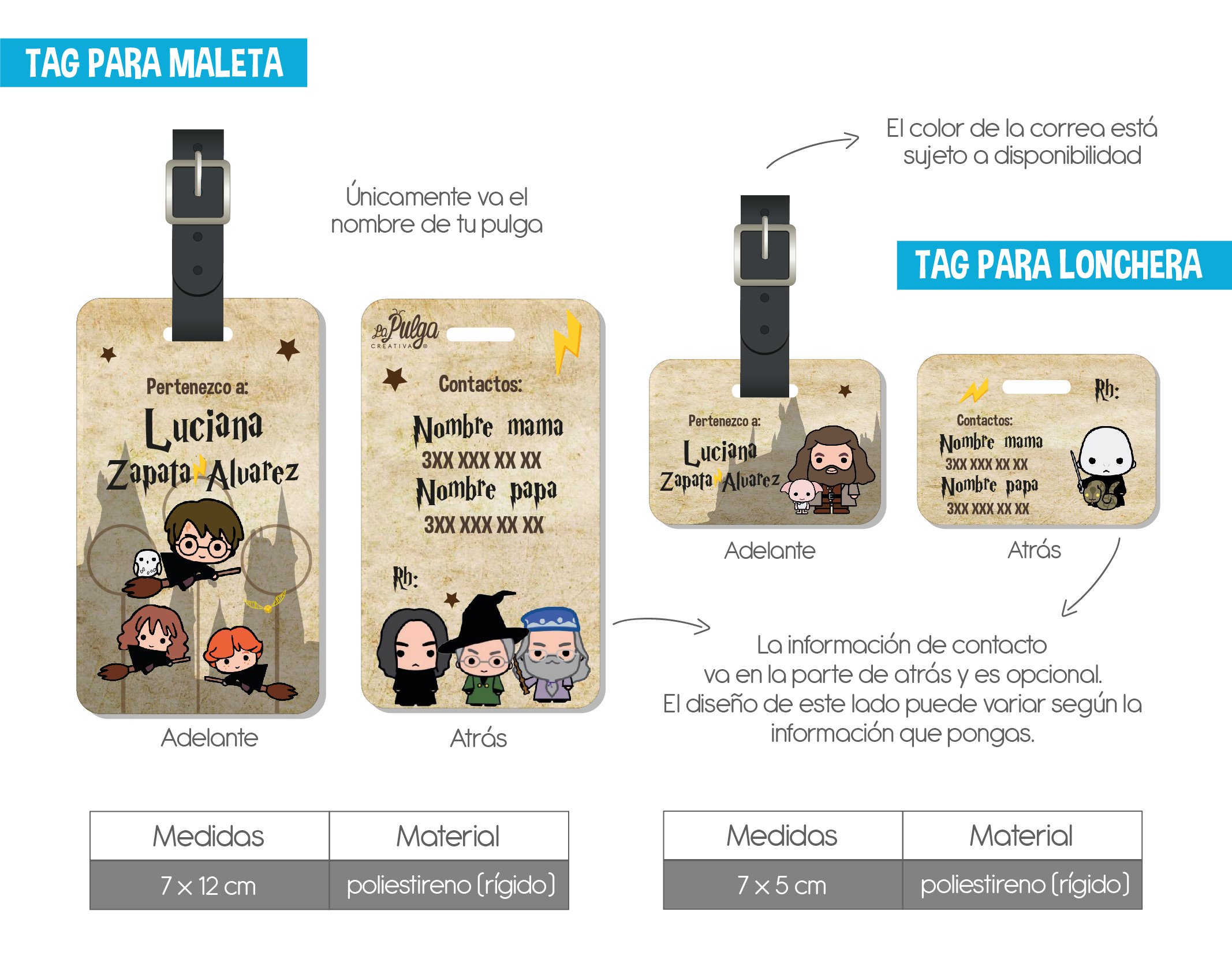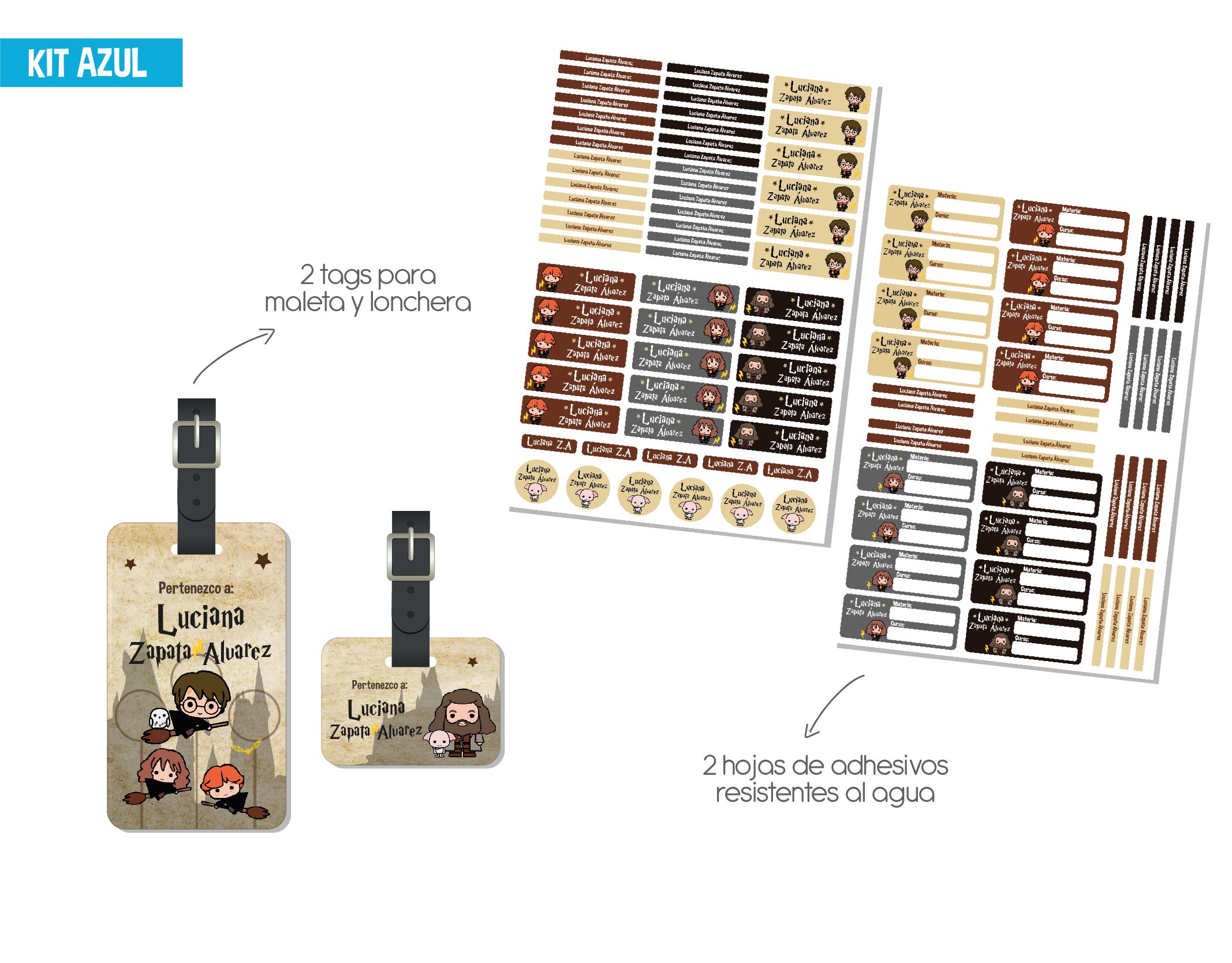 - – 2 tags para maleta y lonchera