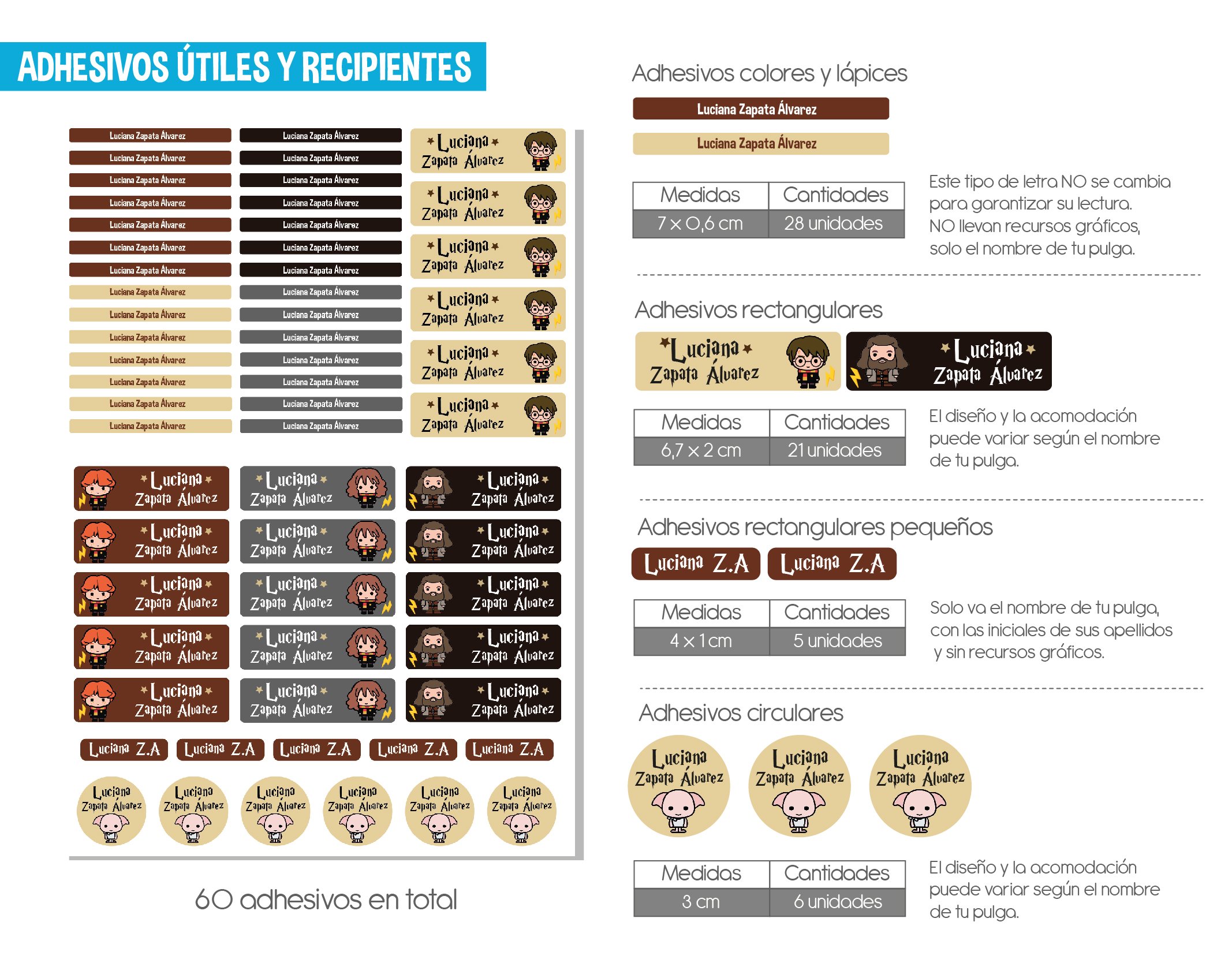 - – 60 adhesivos para útiles y recipientes