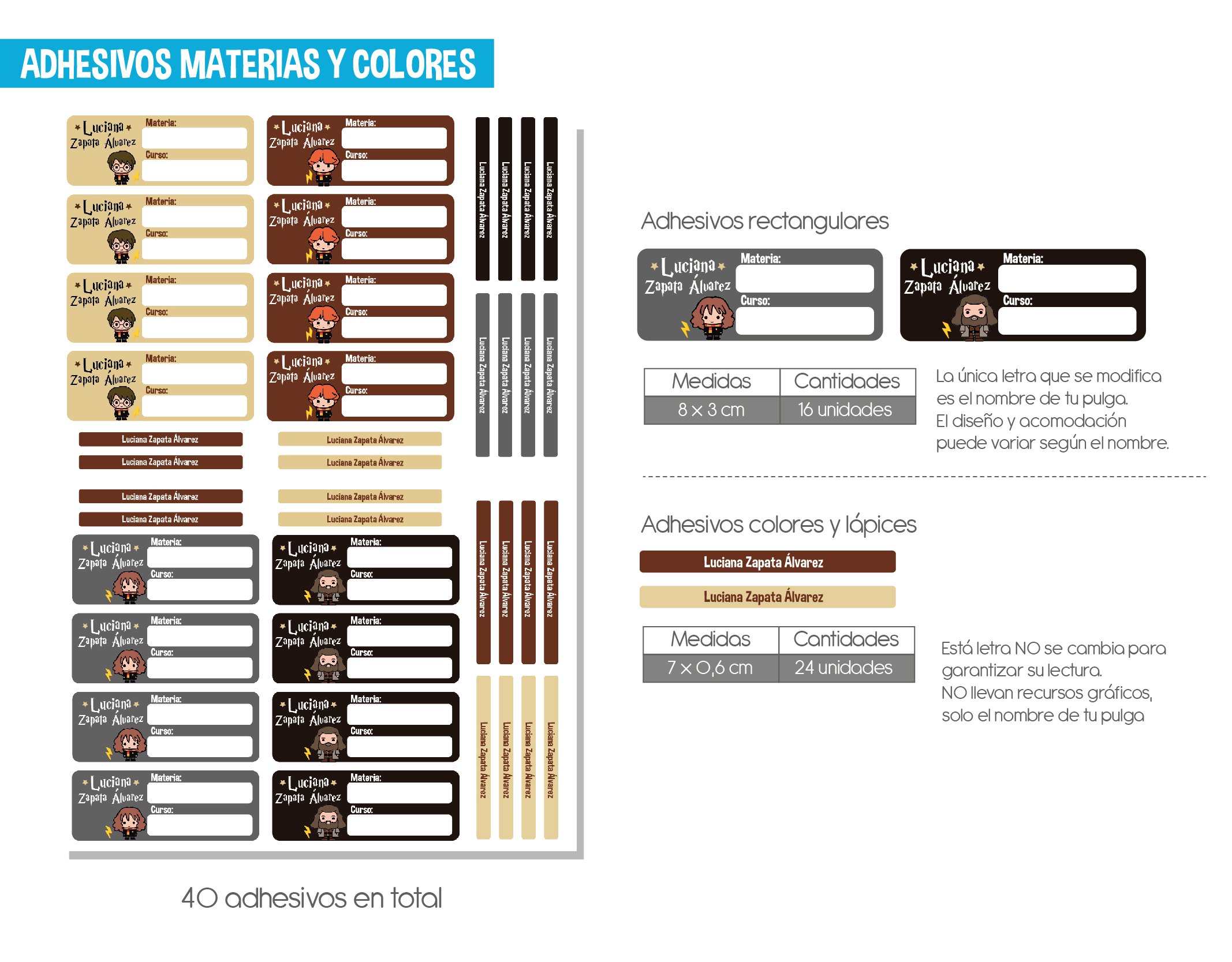 - – 40 adhesivos para materias y colores
